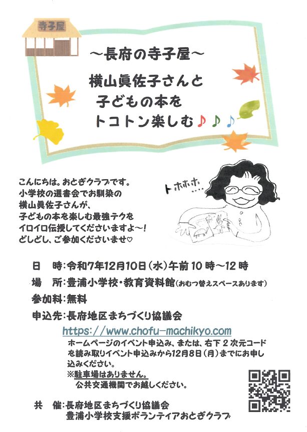 12月10日(水)10時~、豊浦小学校・教育資料館で、小学校の選書会でお馴染みの横山眞佐子さんをお迎えして、子どもの本についての講話が行われます。